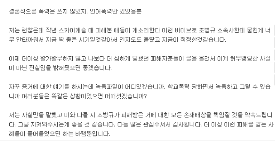 조병규 학폭 피해자라고