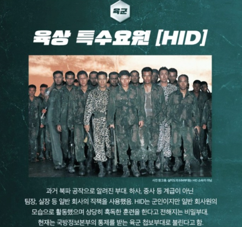 바로 HID로 국군정보사령부 특임대라고 해요.